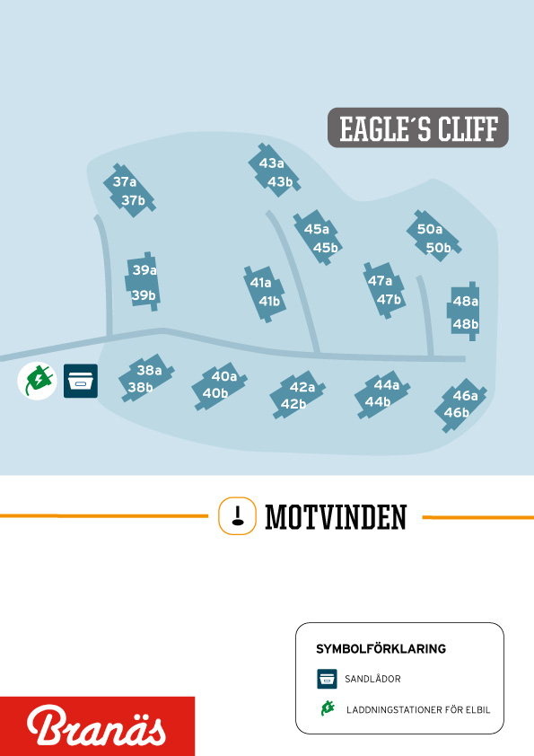 Eagle´s Cliff er beliggende på toppen af Branäsbjerget med udsigt over Klarälvsdalen og tæt på pist og lift. Flotte dobbelthytter i 2 plan med store vinduespartier og muret pejs. Det er privatejet boliger, så der kan være forskel på inventar i boligerne. På bjerget findes desuden skiudlejning, butik og restaurant.